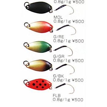 /g1007/g202/g301/m020/00980407トラウトたちの食いが渋いとき、フライフィッシャーがミッジフライを選択するように、小さなルアーには確かに効果があります。ただし、それはバランスのよい、優れたアクションのルアーであることが必須の条件となります。「リトルダンサー」は小粒の0.8gと1g。小型スプーンの課題である「泳ぎとキャスト性能」を両立させるためのギリギリの大きさと重さが選択されています。また、軽量のトラウティーフックを採用することにより、キャスト時や水中でのバランスに優れ、フッキング性能も抜群です。さらに、ペイントタイプの仕上げを両面とすることにより、着水後の短いエリア